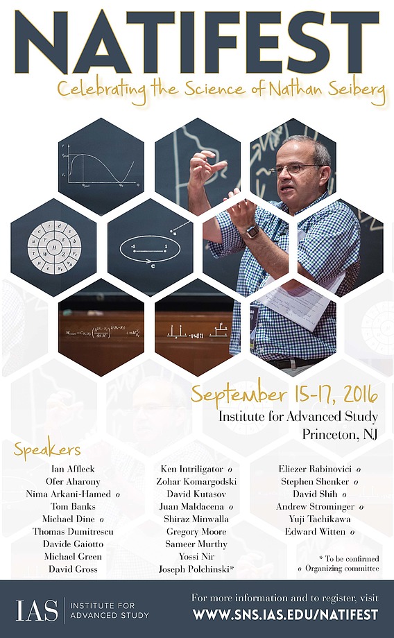 NATIFEST 2016 - September 15-17 A Celebration for Nathan Seiberg 2016 NatiFest 2016 - Sept. 15-17MainEvent Details Travel HintsScheduleLecturers & OrganizersNati Seiberg's Home PageInterviews and Reminiscences FAQs