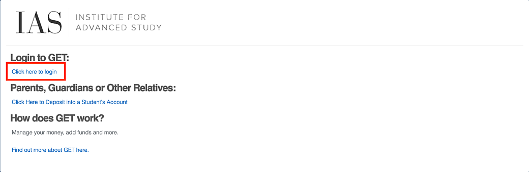 - Login: Click "Click here to login". You will login using your standard IAS credentials. This system leverages the Institute's single sign-on system.