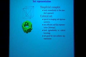 Workshop on Topology - Identifying Order in Complex Systems Date April 01, 2009 video lecture Homology Algorithms for Subsets of $R^d$ April 01, 2009 Marian Mrozek Read More video lecture Guided Sampling of Gaussian Random Fields April 01, 2009 Tom Wanner Read More video lecture Stimulus Space Topology and Geometry from Neural Activity April 01, 2009 Carina Curto We construct our understanding of the world solely from neuronal activity generated in our brains. How do we do this? Many studies have investigated how the electrical activity of neurons (action potentials) is related to outside stimuli, and... Read More School of Mathematics
