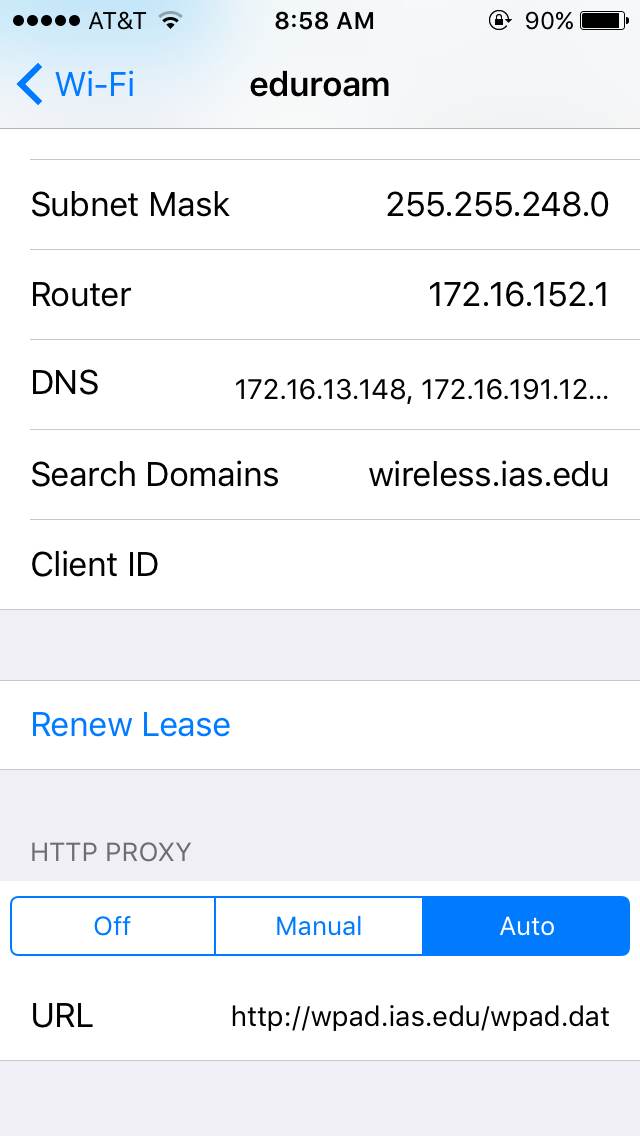 5. In the URL section, type (http://wpad.ias.edu/wpad.dat).